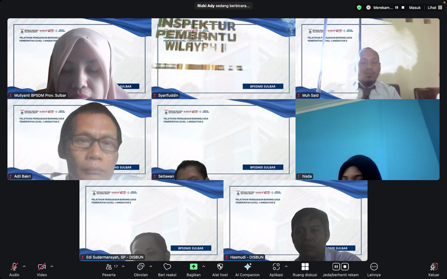 Mamuju — Pemprov Sulbar melalui Badan Pengembangan Sumber Daya Manusia Daerah (BPSDMD) Provinsi Sulawesi Barat menyelenggarakan kegiatan Synchronous Live Zoom sebagai rangkaian dari Pelatihan Pengadaan Barang/Jasa Pemerintah (PBJP) Level-2 T.A 2025. Senin, 7 Juli 2025.