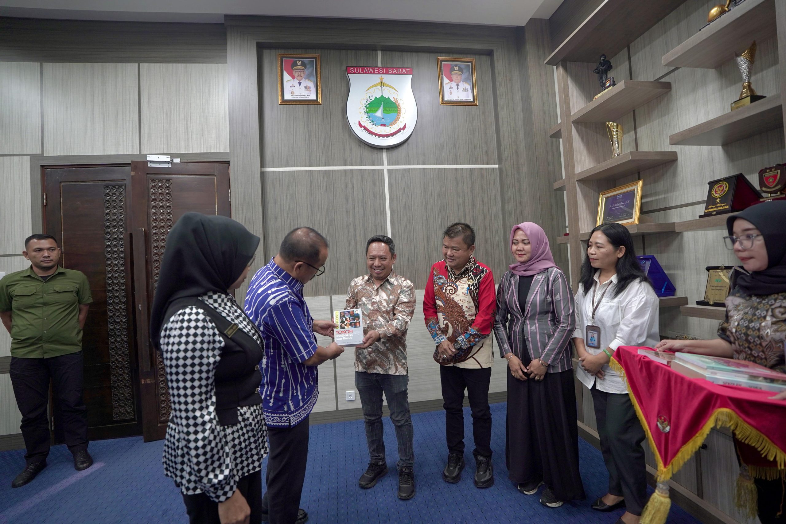 Mamuju – Gubernur Sulawesi Barat, Suhardi Duka, menerima audiensi dari penerbit Nuansa Cendekia di Ruang Kerja Gubernur Sulbar pada Kamis 31 Juli 2025 . Dalam pertemuan tersebut, penerbit menyerahkan sumbangan buku sebagai bentuk dukungan terhadap program literasi yang digalakkan Pemprov Sulbar. Turut mendampingi Gubernur Sulbar, Kepala Dinas Perpustakaan dan Kearsipan Daerah (DPKD) Sulbar, Mustari Mula.