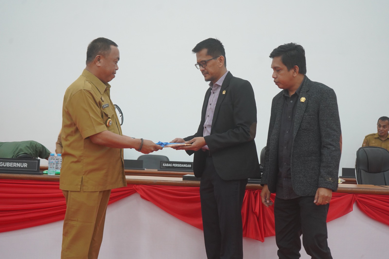 Mamuju — Mewakili Gubernur Sulbar Suhardi Duka (SDK), Asisten Pemkesra Muh Jaun menghadiri rapat paripurna dalam rangka penjelasan Gubernur terhadap Ranperda tentang penyertaan modal daerah pada PT Bank Pembangunan Daerah Sulselbar di kantor DPRD Sulbar, Senin 7 Juli 2025.